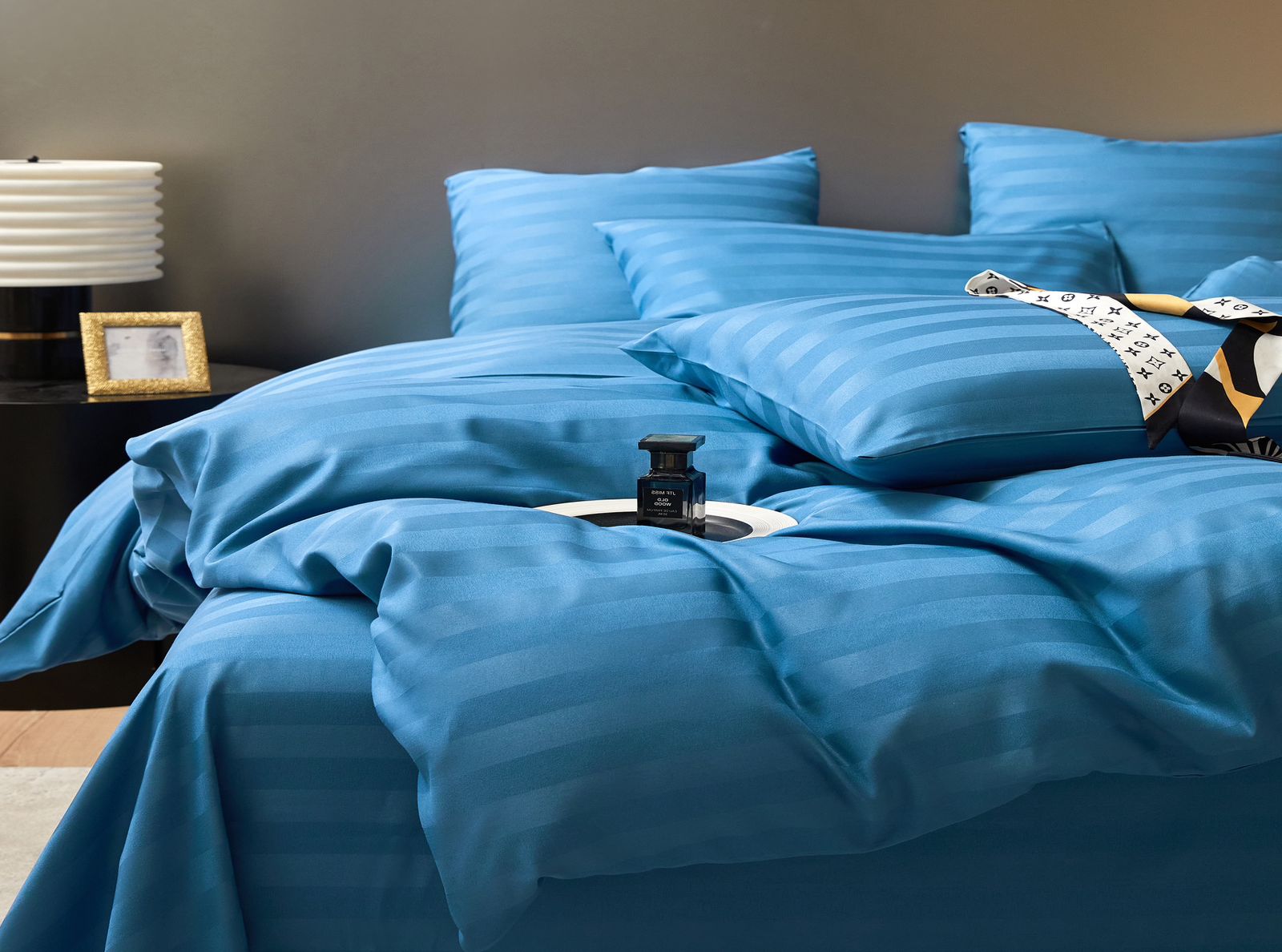 Постельное белье "Mency" страйп сатин (с простыней на резинке)