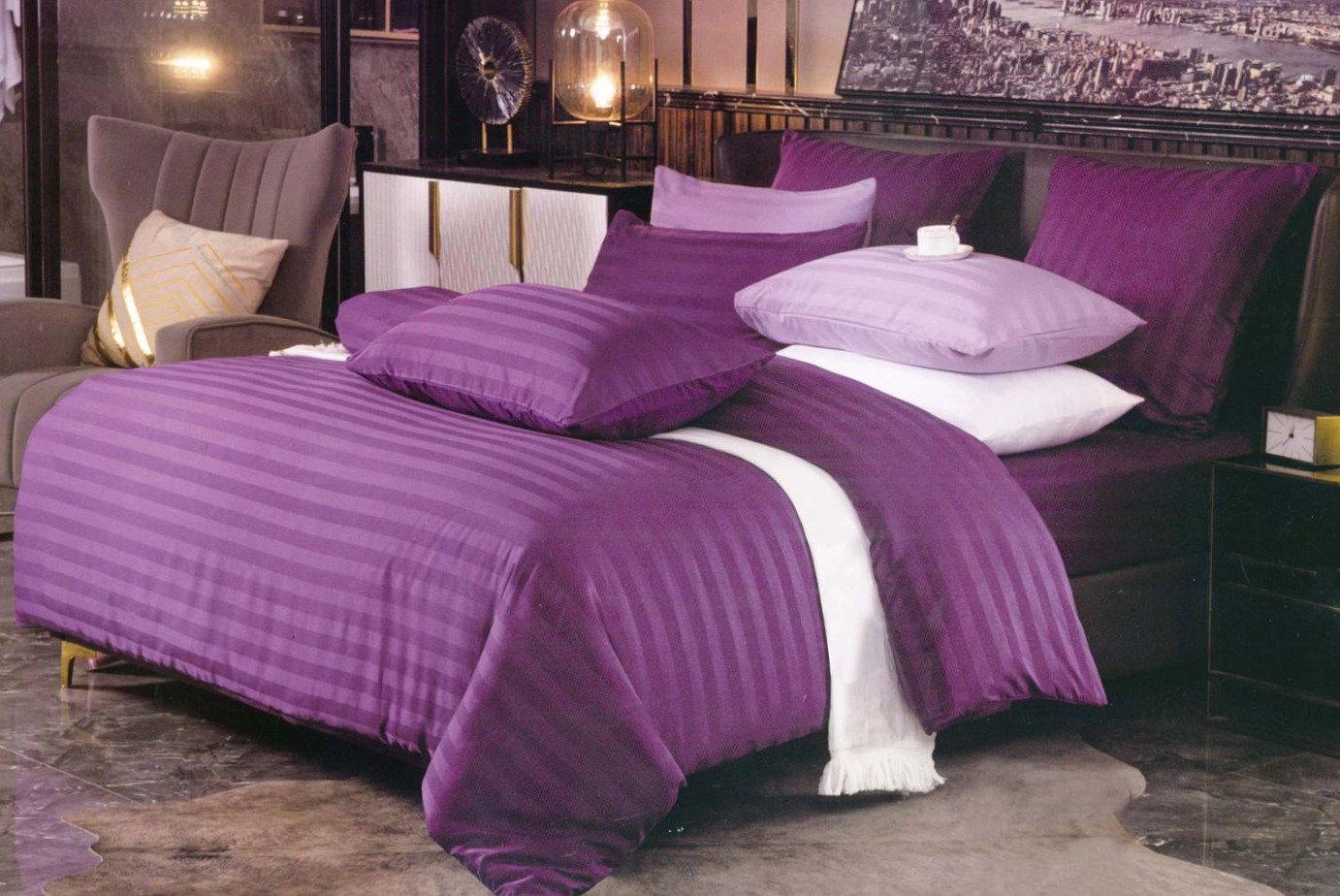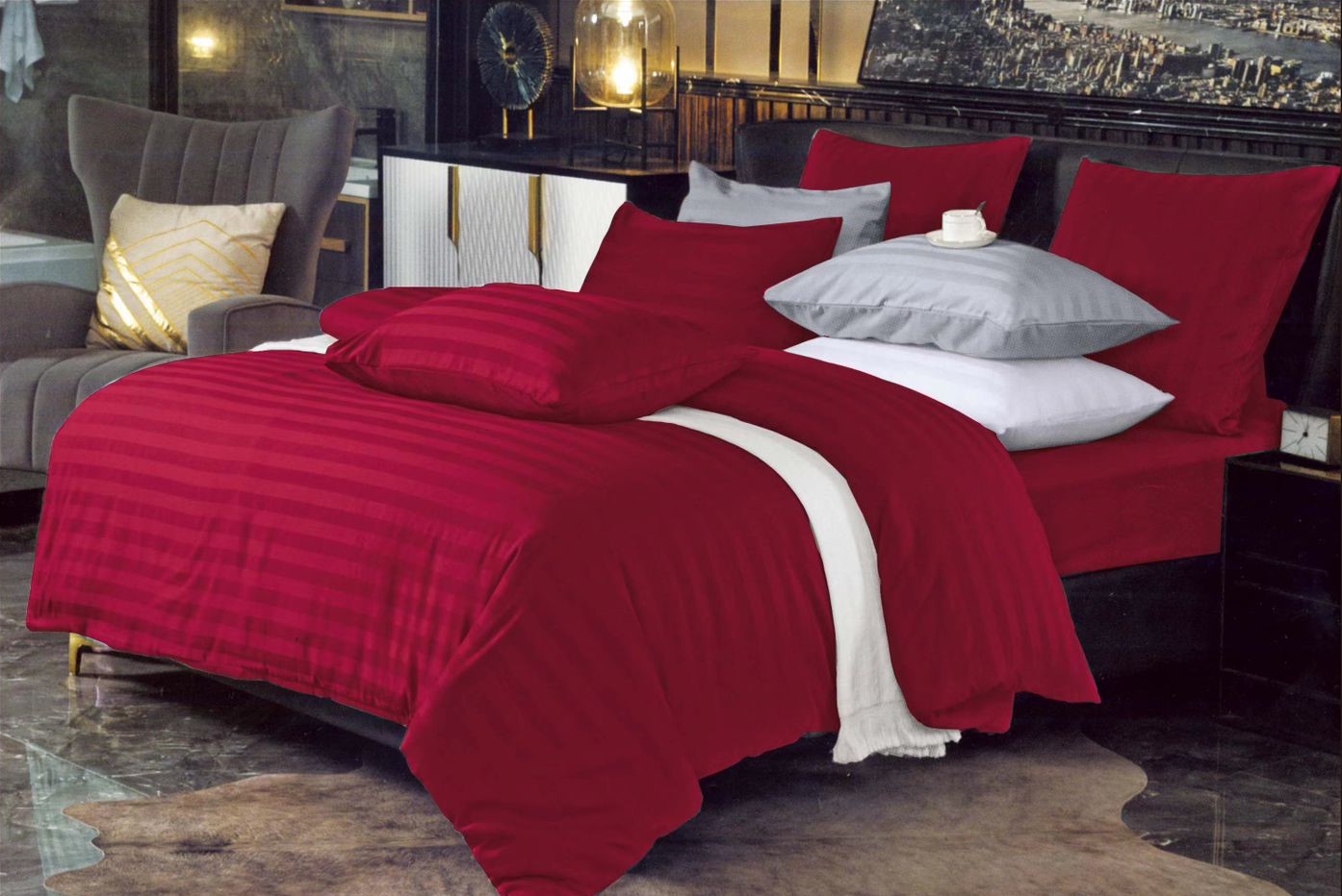 Комплекты постельного белья "Alana" страйп-сатин / Размер Двухспальный, коробка 36 расцветок