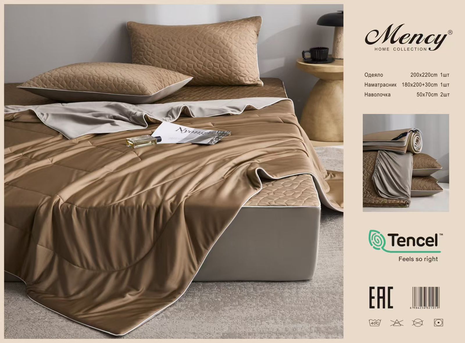 Комплект постельного белья с одеялом "Mency" Тенсель / Размер Евро / Упаковка 21 расцветка — отзывы