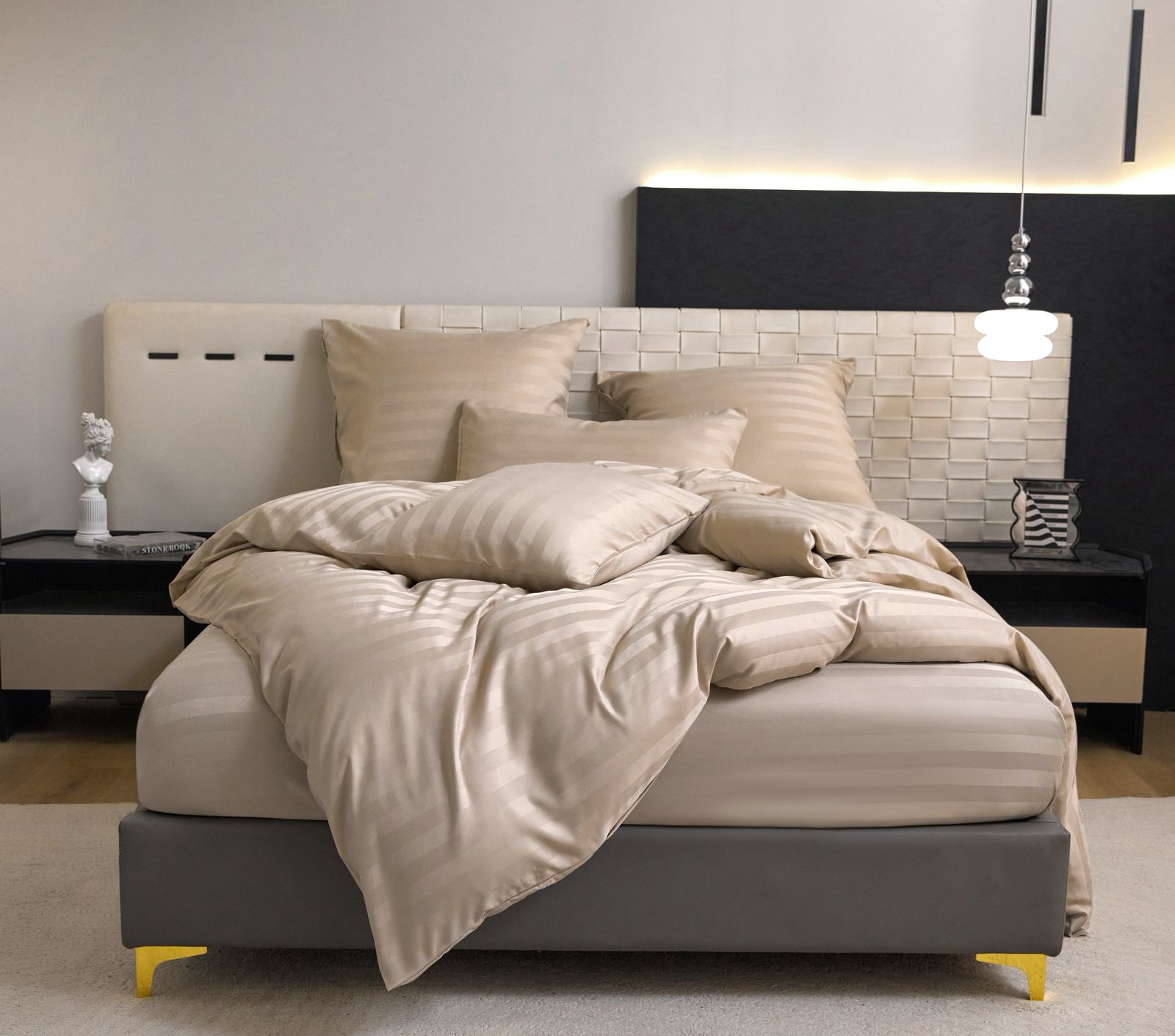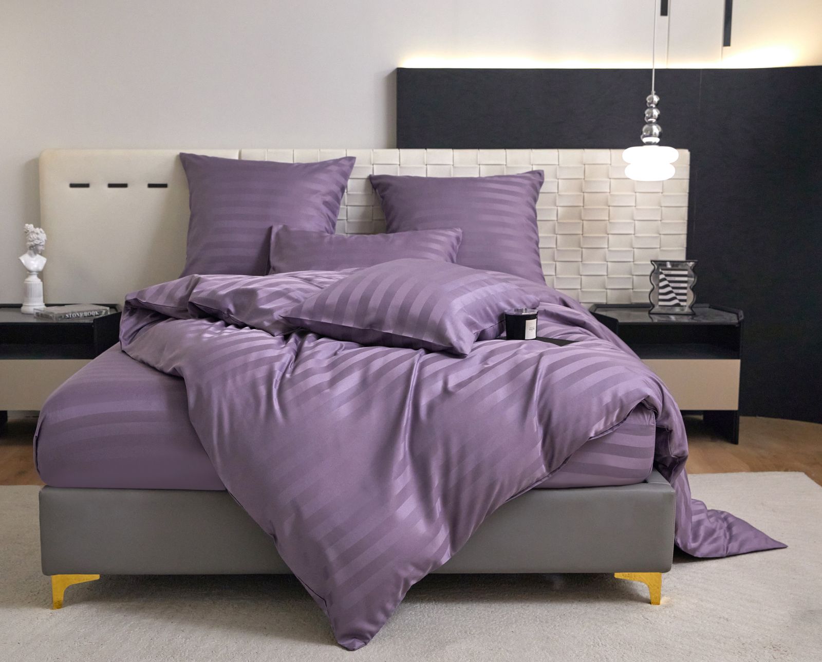 Коробка постельного белья "Mency" страйп сатин на резинке / Размер Семейный / Коробка 24 расцветки — отзывы
