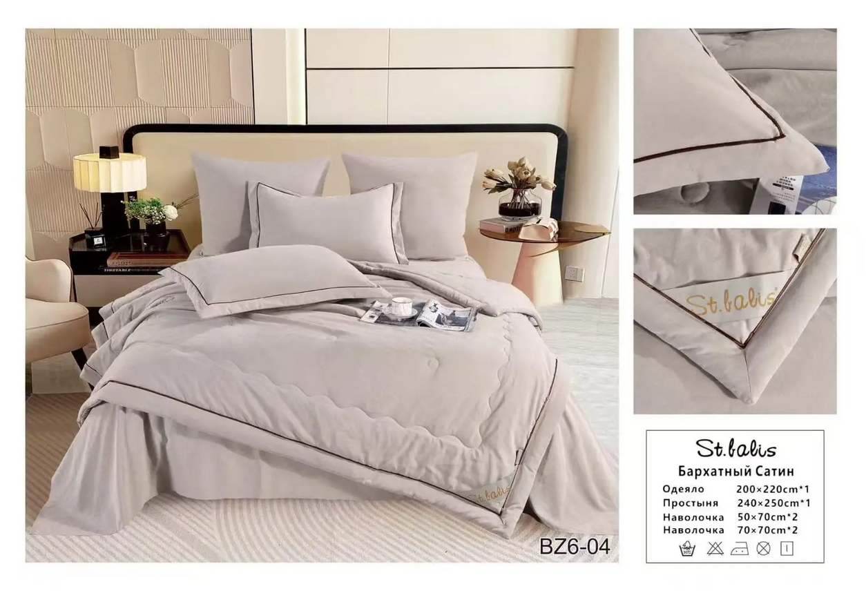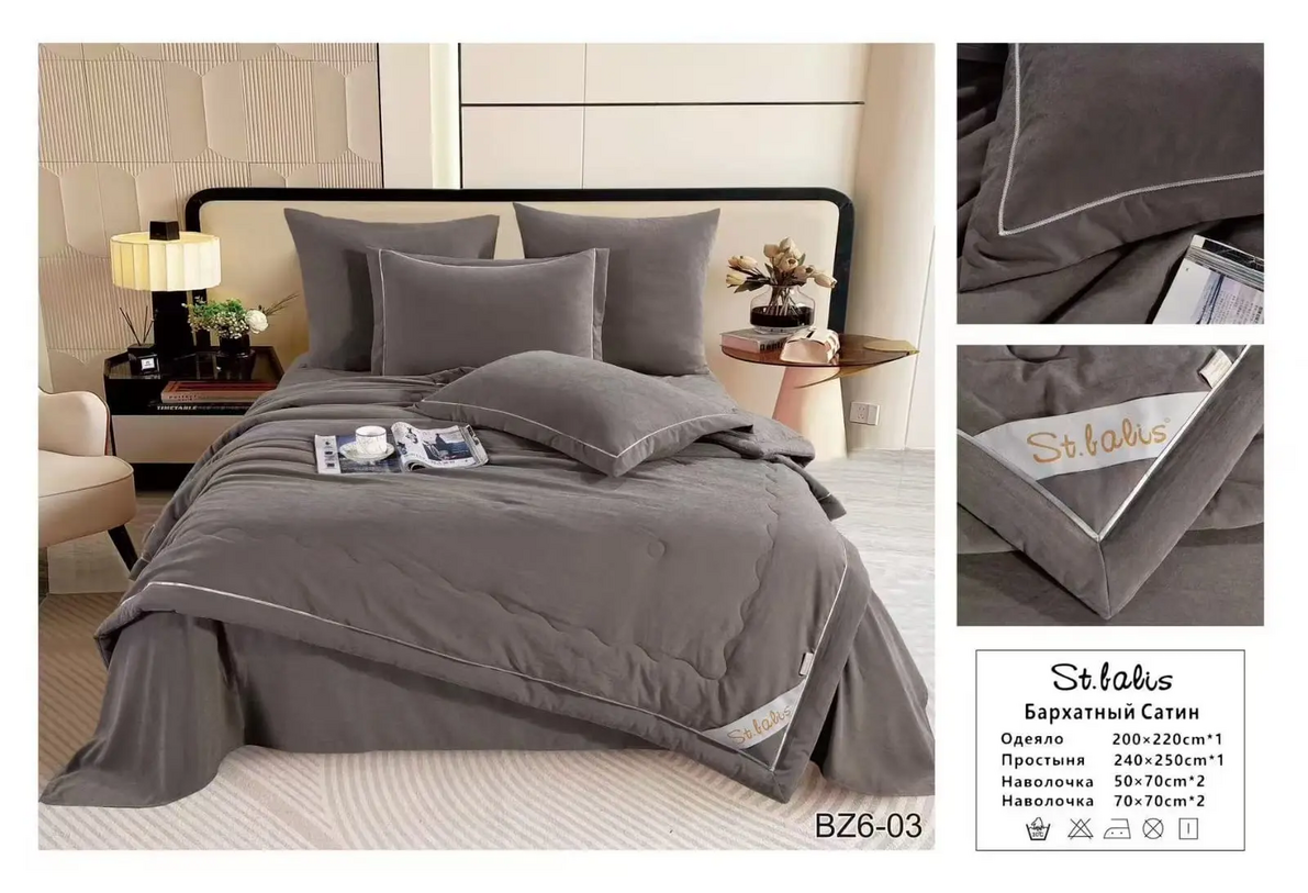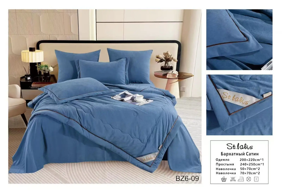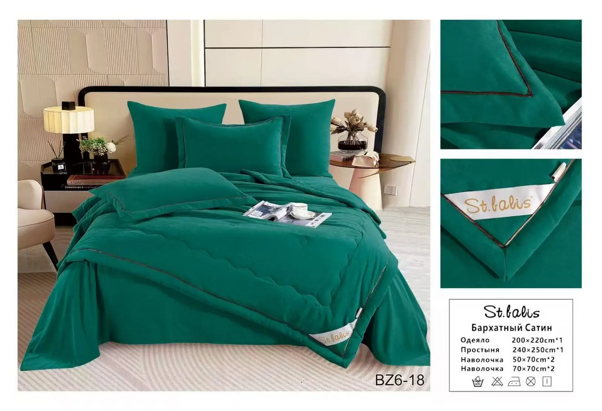 Комплекты "St.Balis" бархатный сатин с одеялом / Размер Евро / Упаковка 20 расцветок