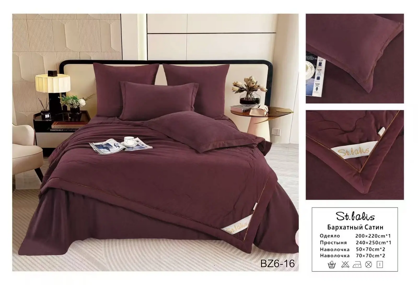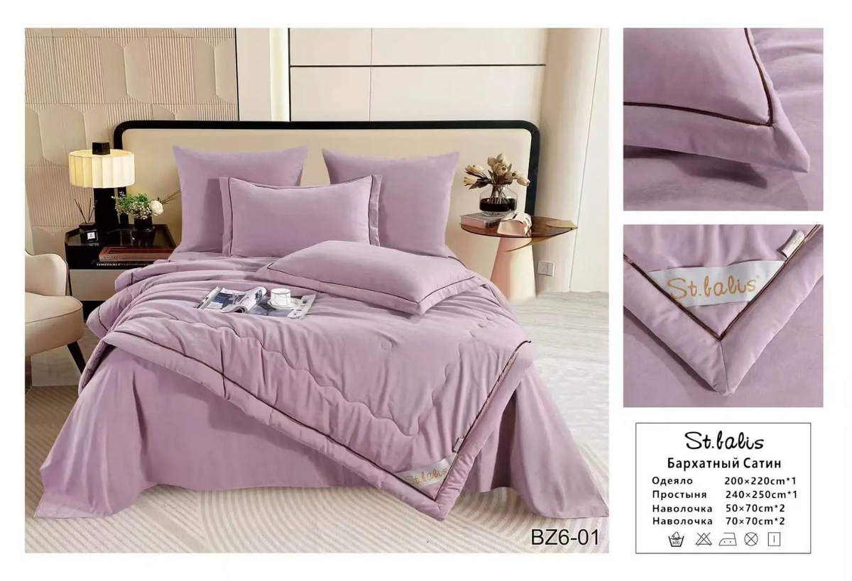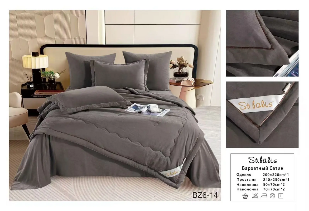 Комплекты "St.Balis" бархатный сатин с одеялом / Размер Евро / Упаковка 20 расцветок