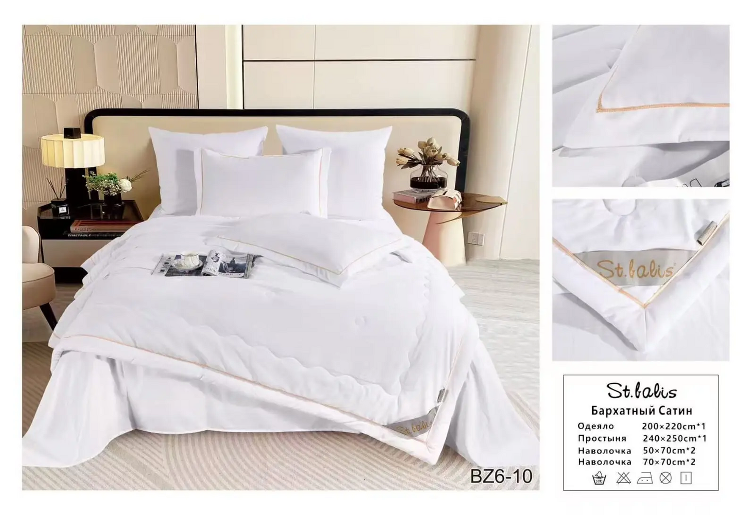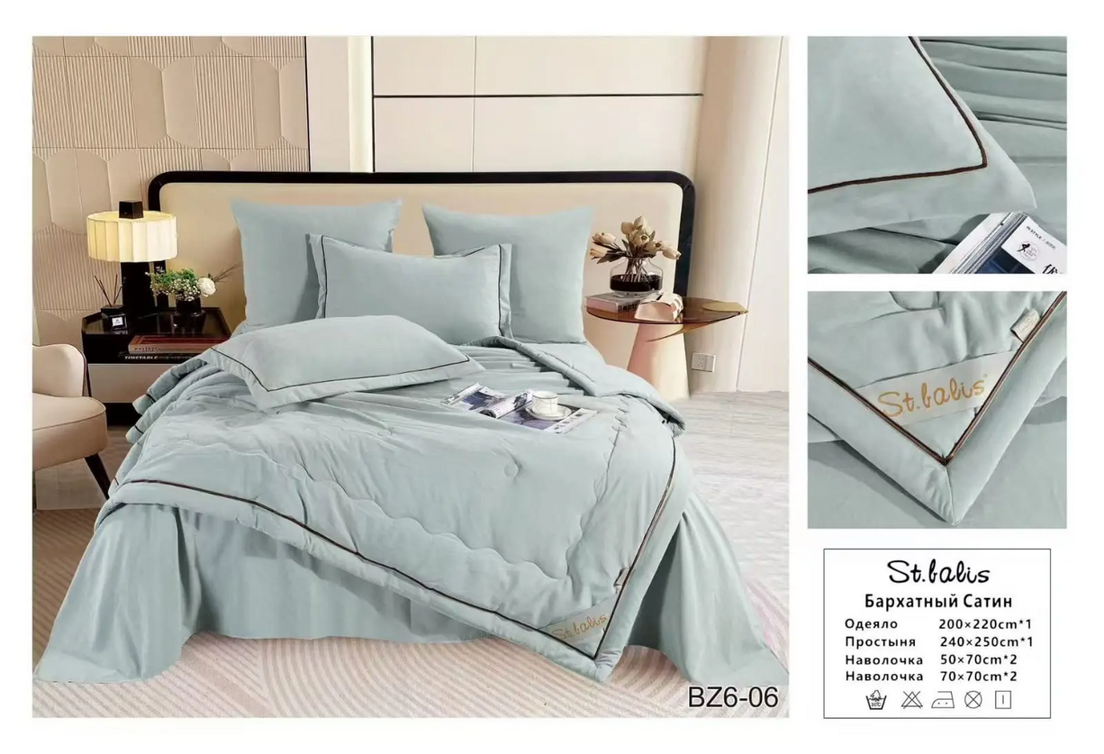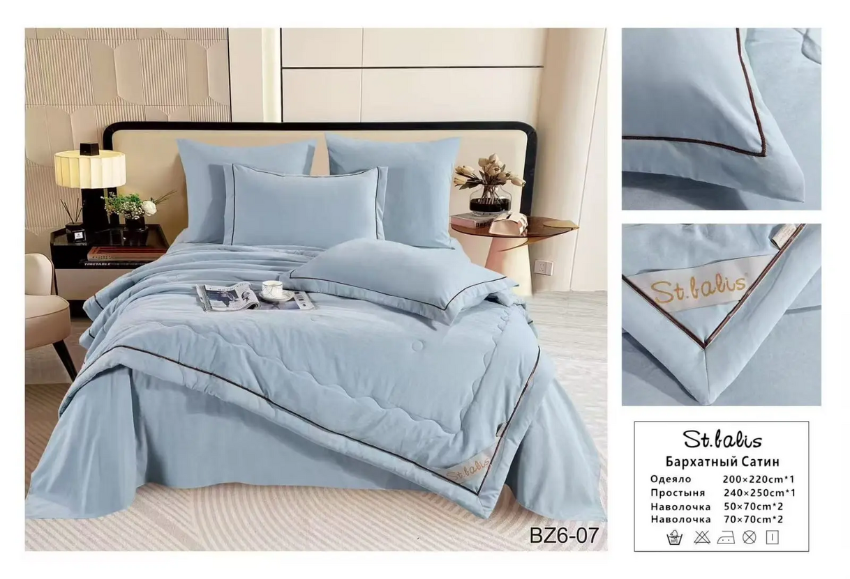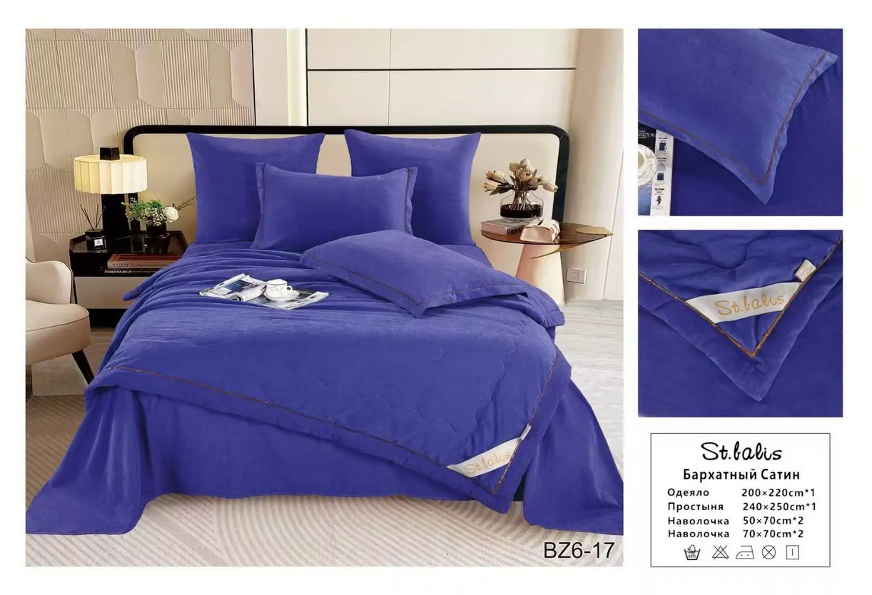 Комплекты постельного белья "St.Balis" бархатный сатин с одеялом / Размер Евро / Упаковка 20 расцветок